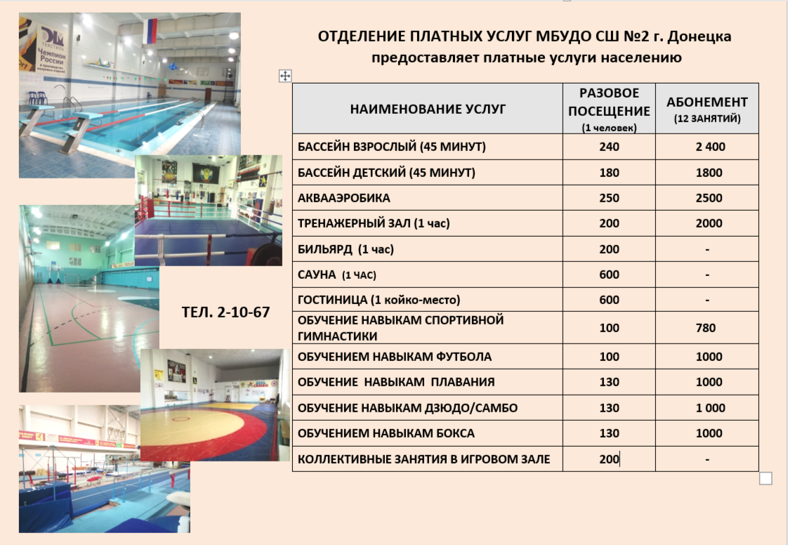 15.00-22.00 Аквааэробика 19.00-20.00 |